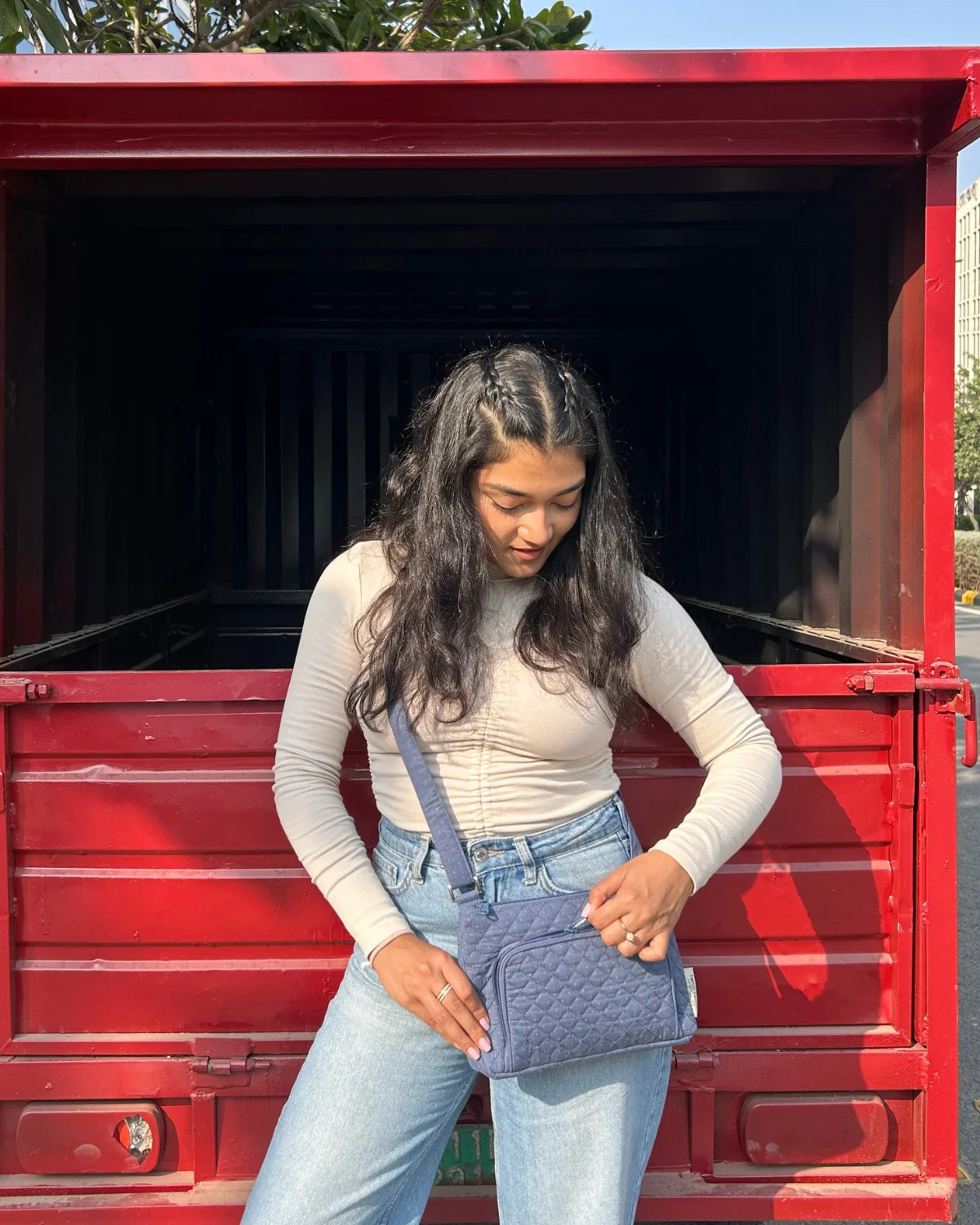 Our Sling Bag features three spacious compartments to keep your essentials organized, offering hands-free convenience and everyday versatility—perfect for travel days, shopping days, and everything in between. Easily carry your keys, phone, and wallet from morning walks to your travels to the grocery store.