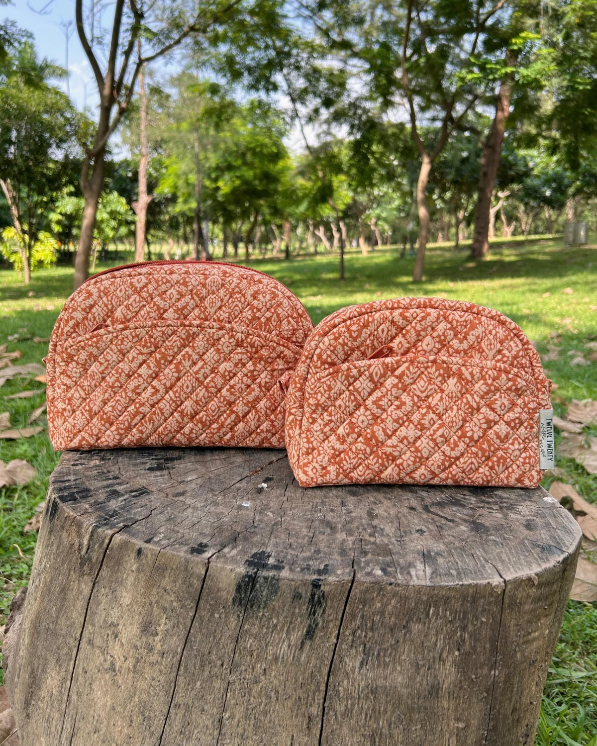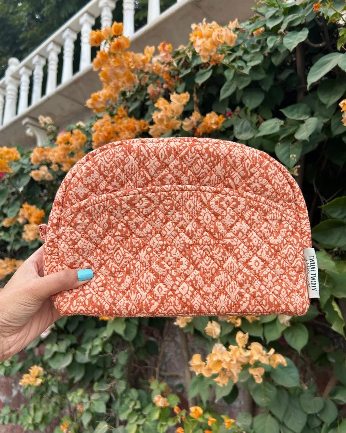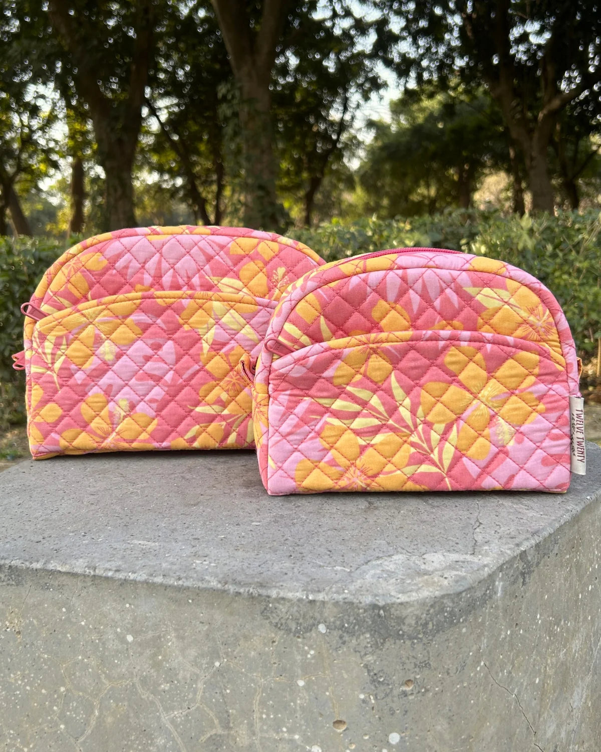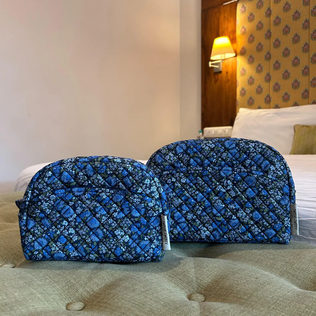Made from premium quilted cotton in stylish prints, paired with coordinated printed cotton lining from inside. Equipped with top quality zippers, pullers, and hardware to ensure durability, stability, and refined style.