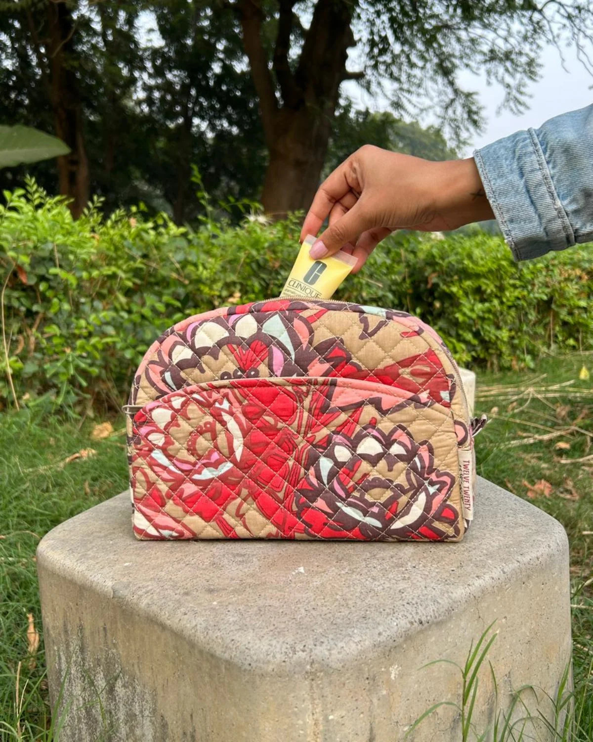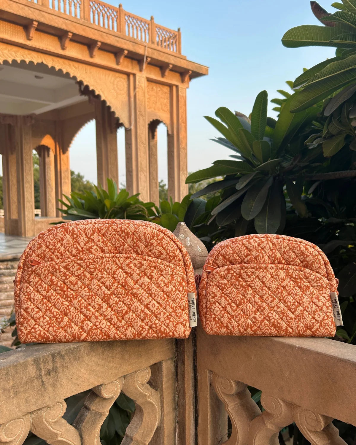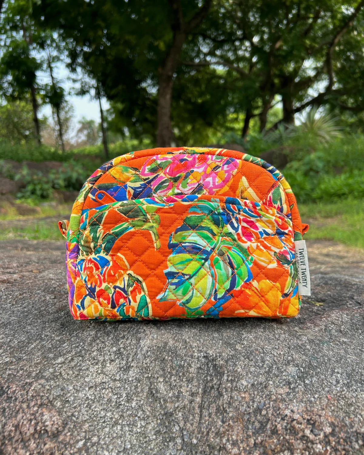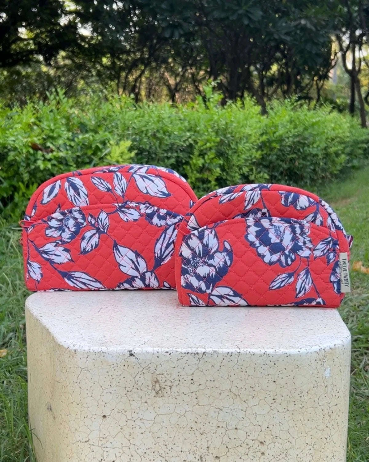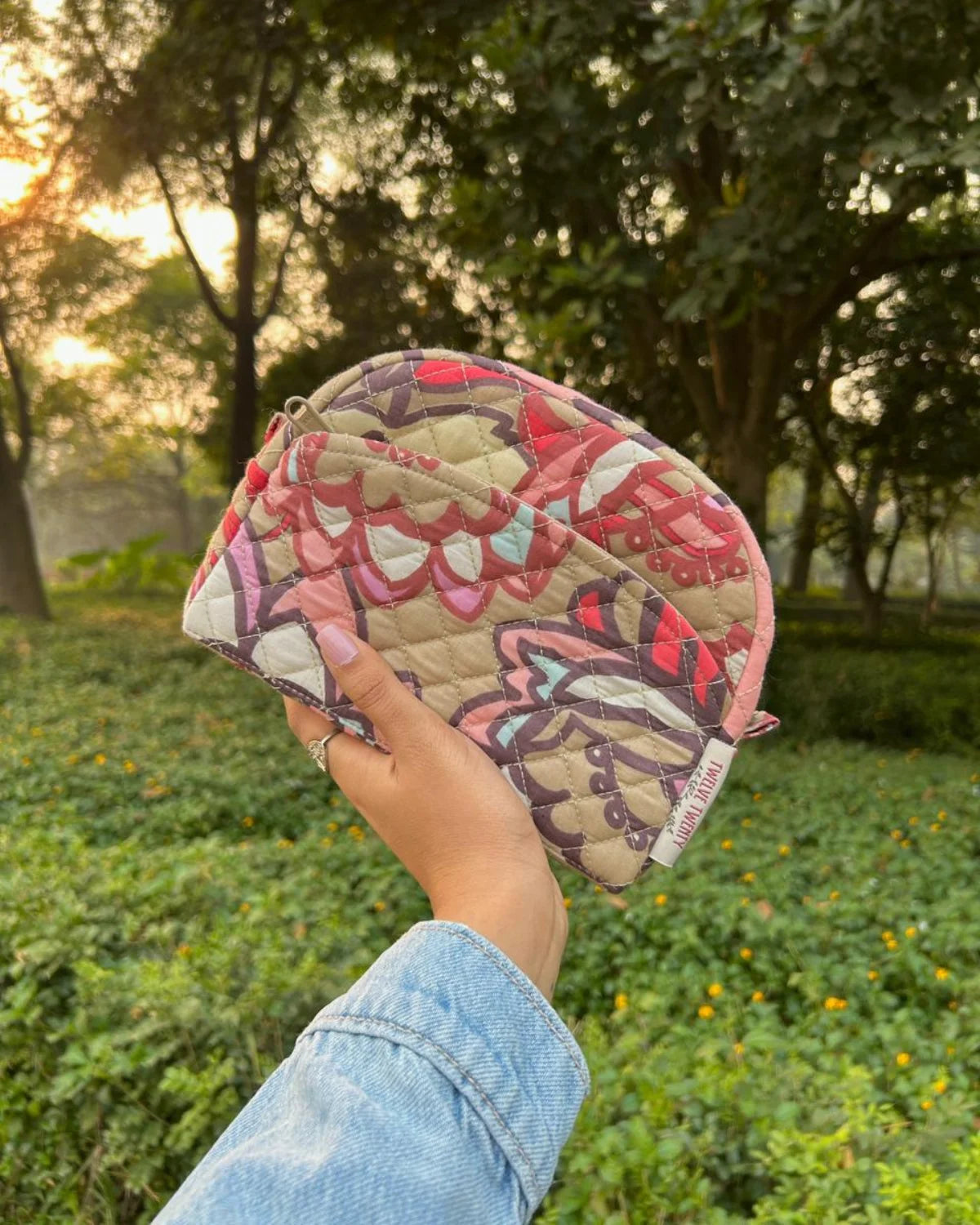 Made from premium quilted cotton in stylish prints, paired with coordinated printed cotton lining from inside. Equipped with top quality zippers, pullers, and hardware to ensure durability, stability, and refined style.
