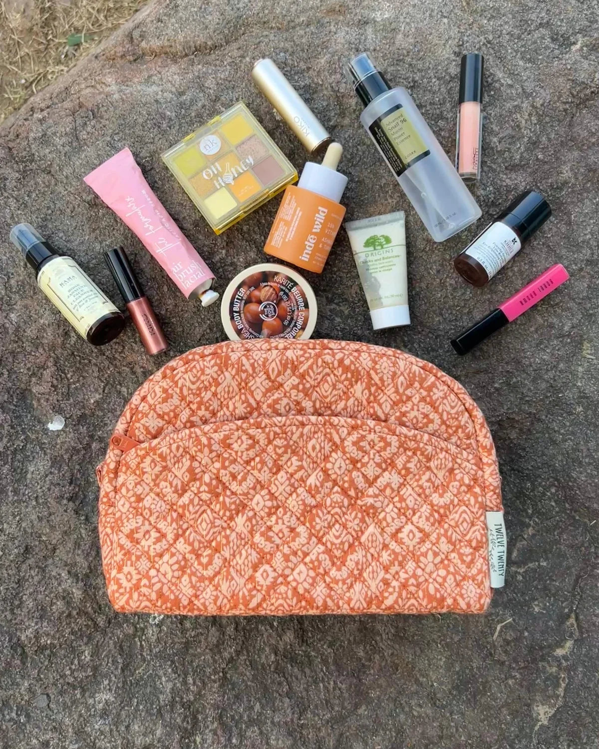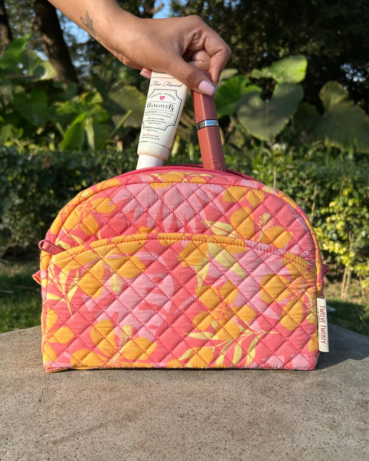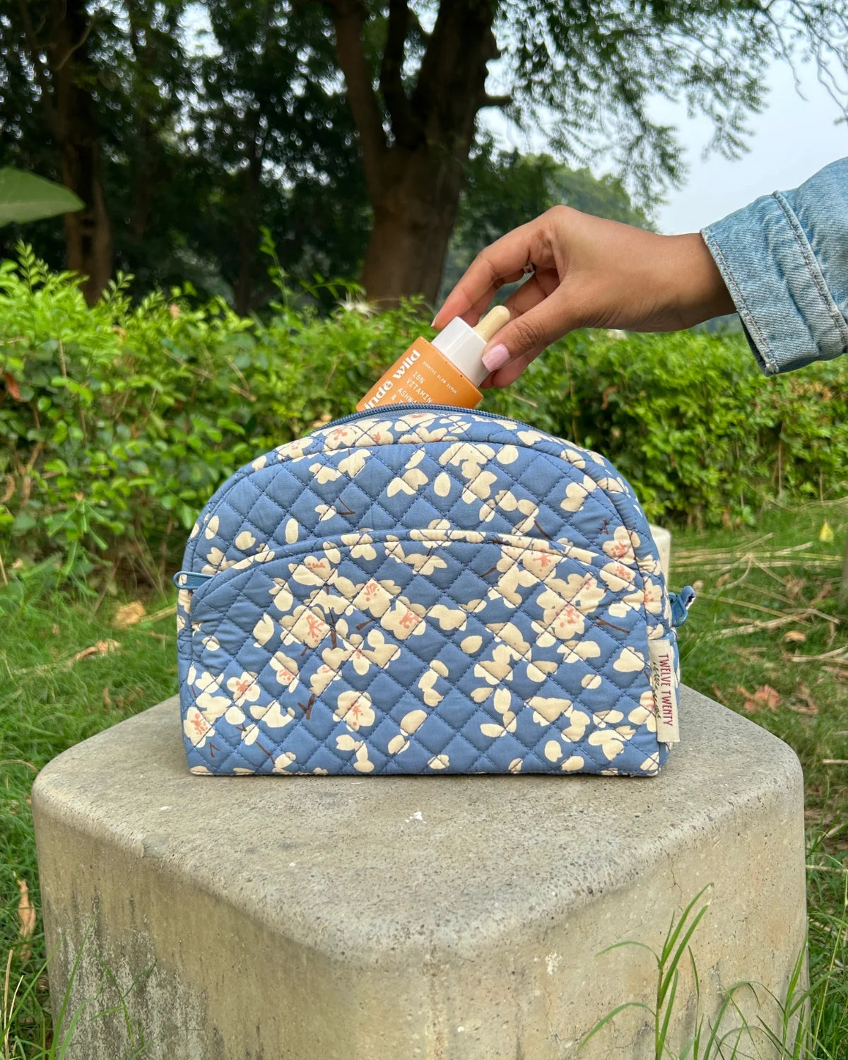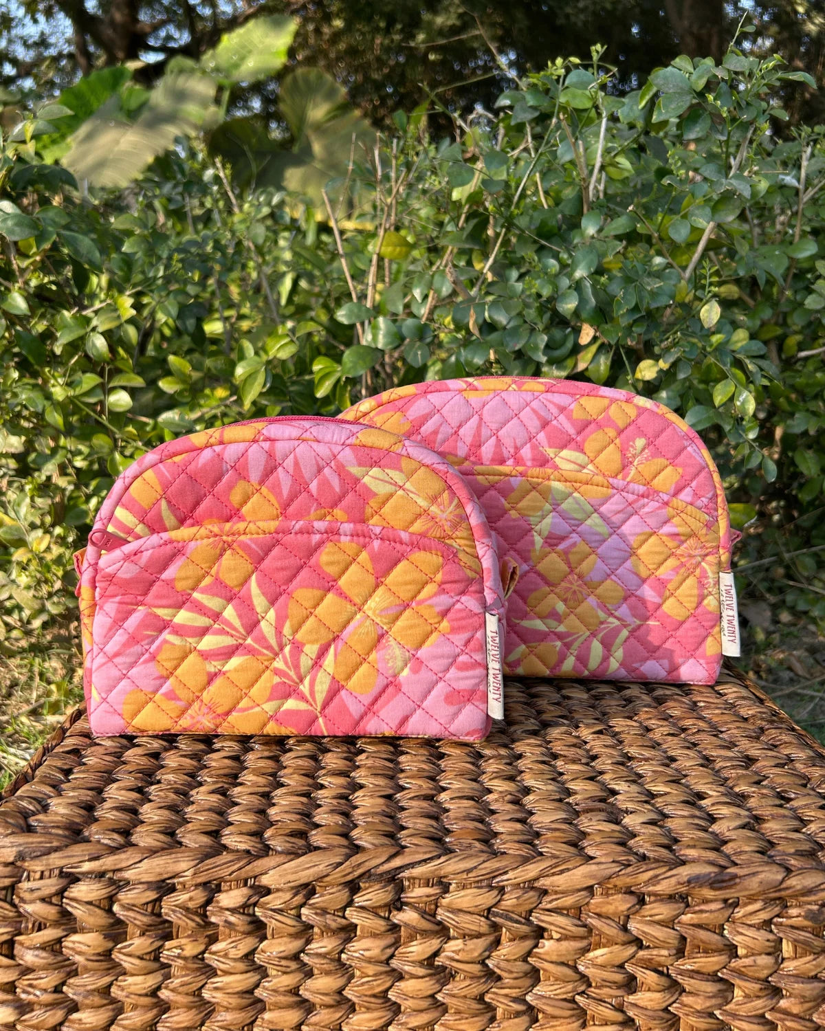 Made from premium quilted cotton in stylish prints, paired with coordinated printed cotton lining from inside. Equipped with top quality zippers, pullers, and hardware to ensure durability, stability, and refined style.