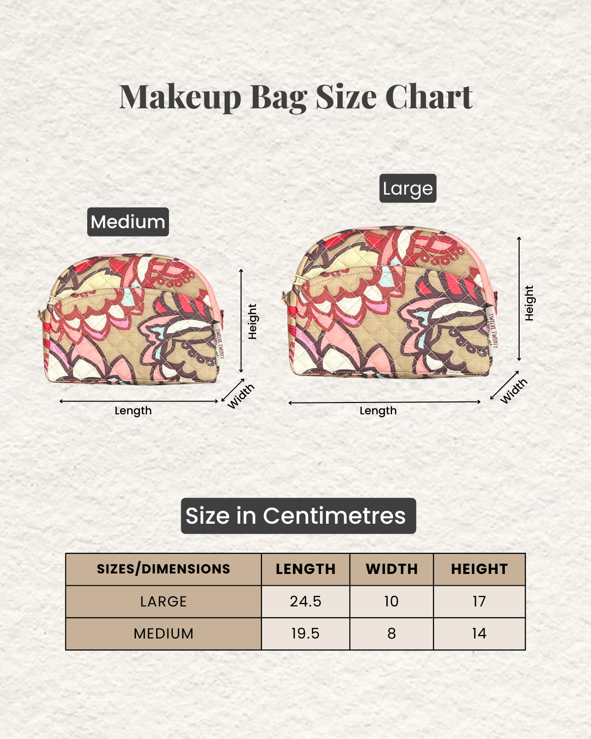 - Large: 24.5cm W x 10cm D x 17cm H