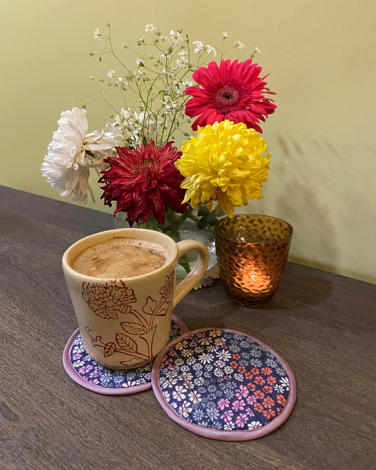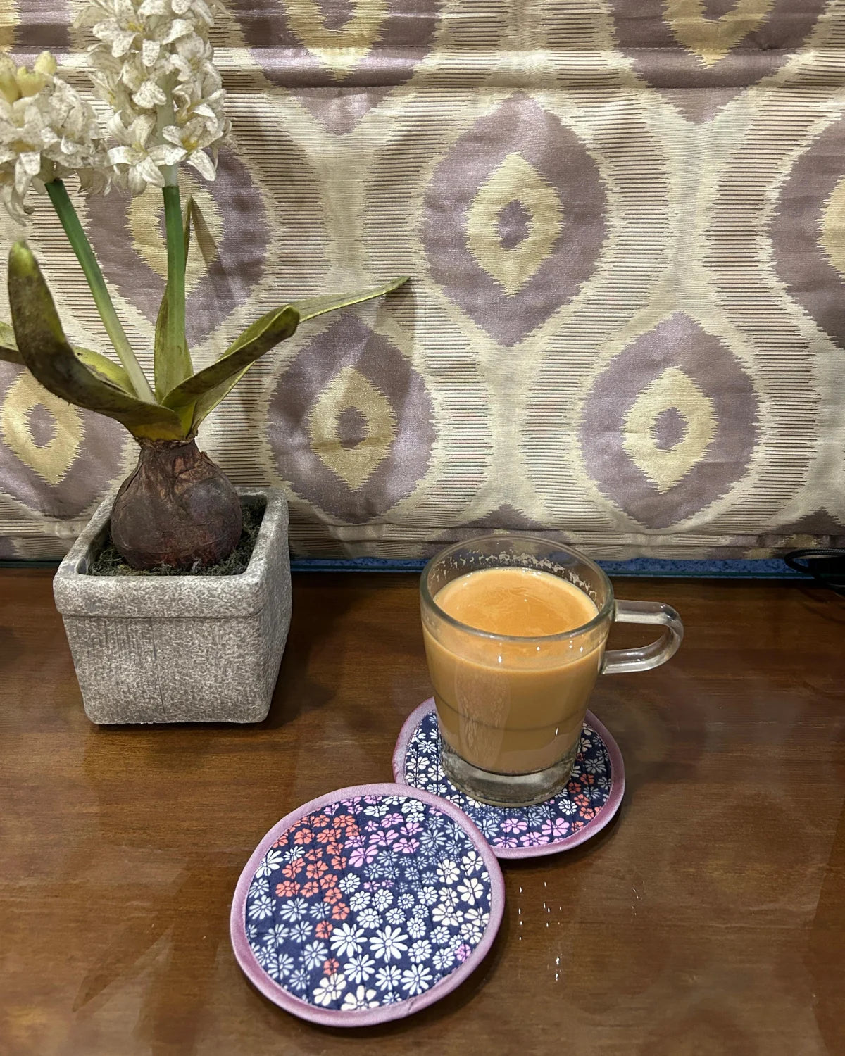 Protect your furniture with this colorful coaster set. They add a fun vibe to your party while also safeguarding your furniture from condensation created by cold drinks.