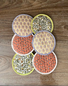Protect your furniture with this colorful coaster set. They add a fun vibe to your party while also safeguarding your furniture from condensation created by cold drinks.