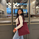 This Stylish Corduroy Tote Bag offers everyday comfort with wide, soft straps that won’t dig in. A secure zip-top closure and inner pocket to keep essentials safe.
