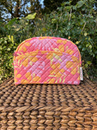 This vanity bag is the perfect mix of fancy and functional. Lined with a transparent plastic layer, it wipes clean with ease. Carry all your makeup or skincare essentials effortlessly with our stylish and practical toiletry bags for women.