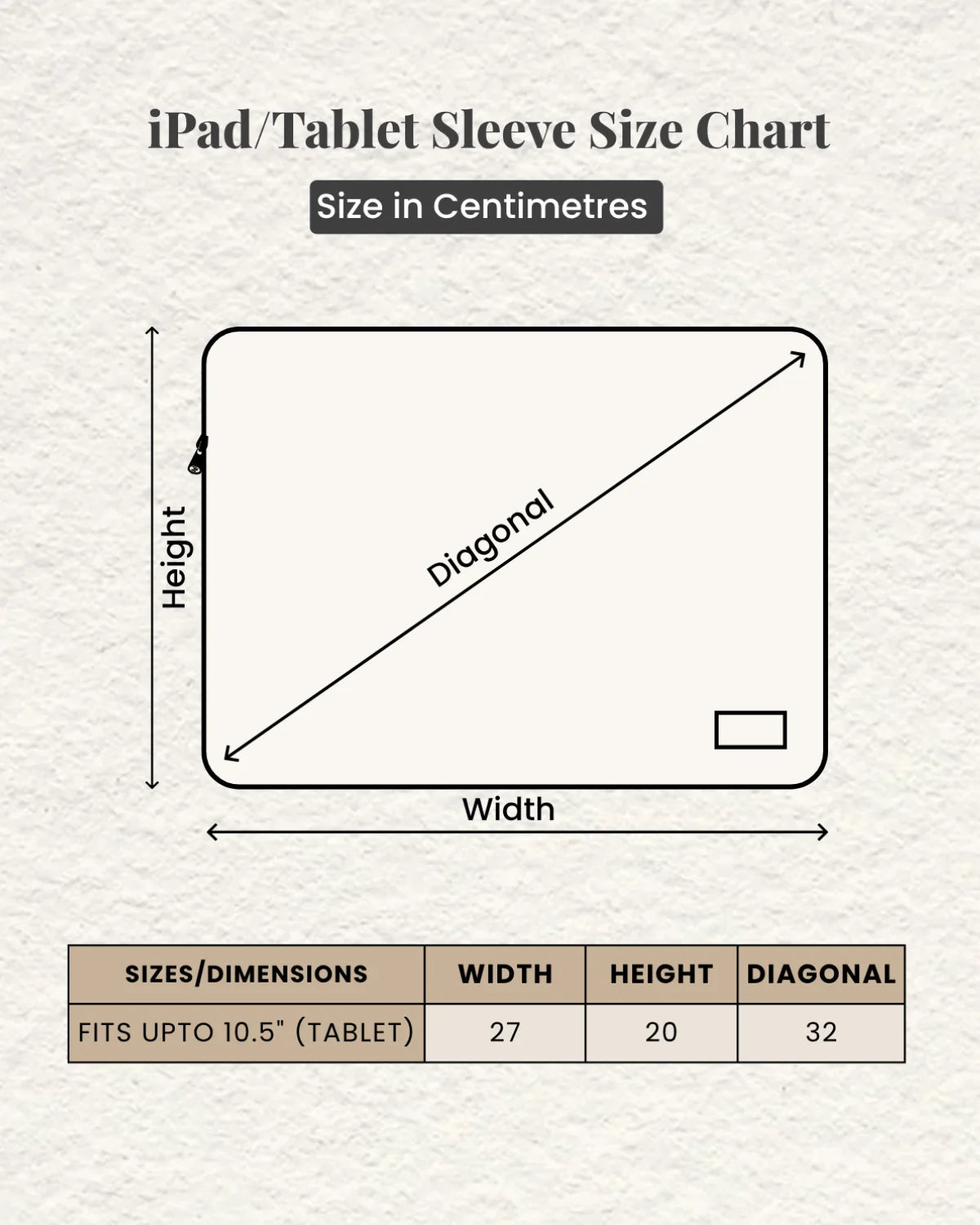 Give your Tablet or iPad a stylish upgrade with our protective quilted sleeve, designed with an added layer of shock-absorbent HEATLON- For that extra padding. Whether you're working from the office or a café, this sleeve is sure to come in handy. Size of Sleeve: Fits Up to 10.5" Tablet/iPad.