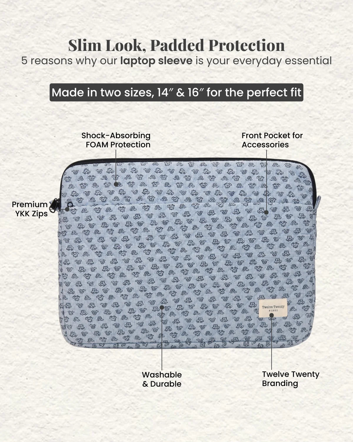 Give your laptop a stylish and protective look with our quilted laptop case layered with shock-absorbent HEATLON. This laptop sleeve with pocket for charger provides extra space for essentials like a diary, mouse, and earphones, making it the best laptop sleeve for everyday use.