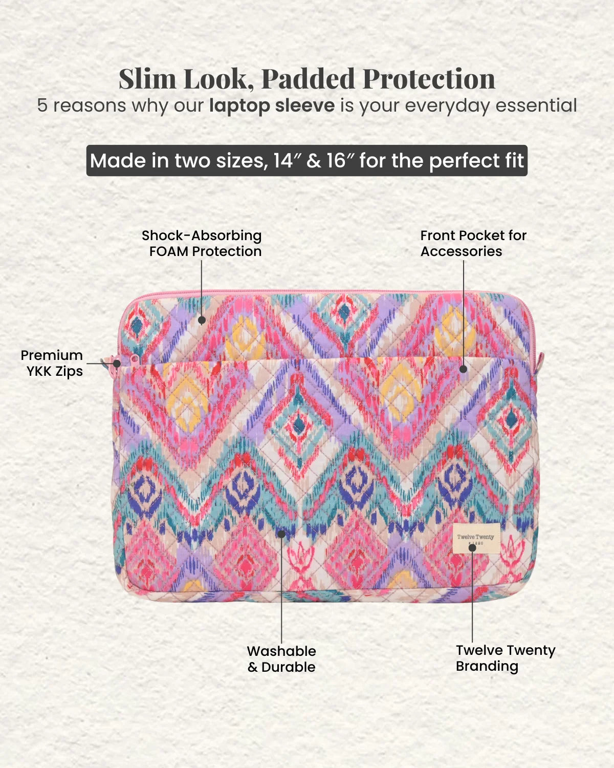 Give your laptop a stylish and protective look with our quilted laptop case layered with shock-absorbent HEATLON. This laptop sleeve with pocket for charger provides extra space for essentials like a diary, mouse, and earphones, making it the best laptop sleeve for everyday use.