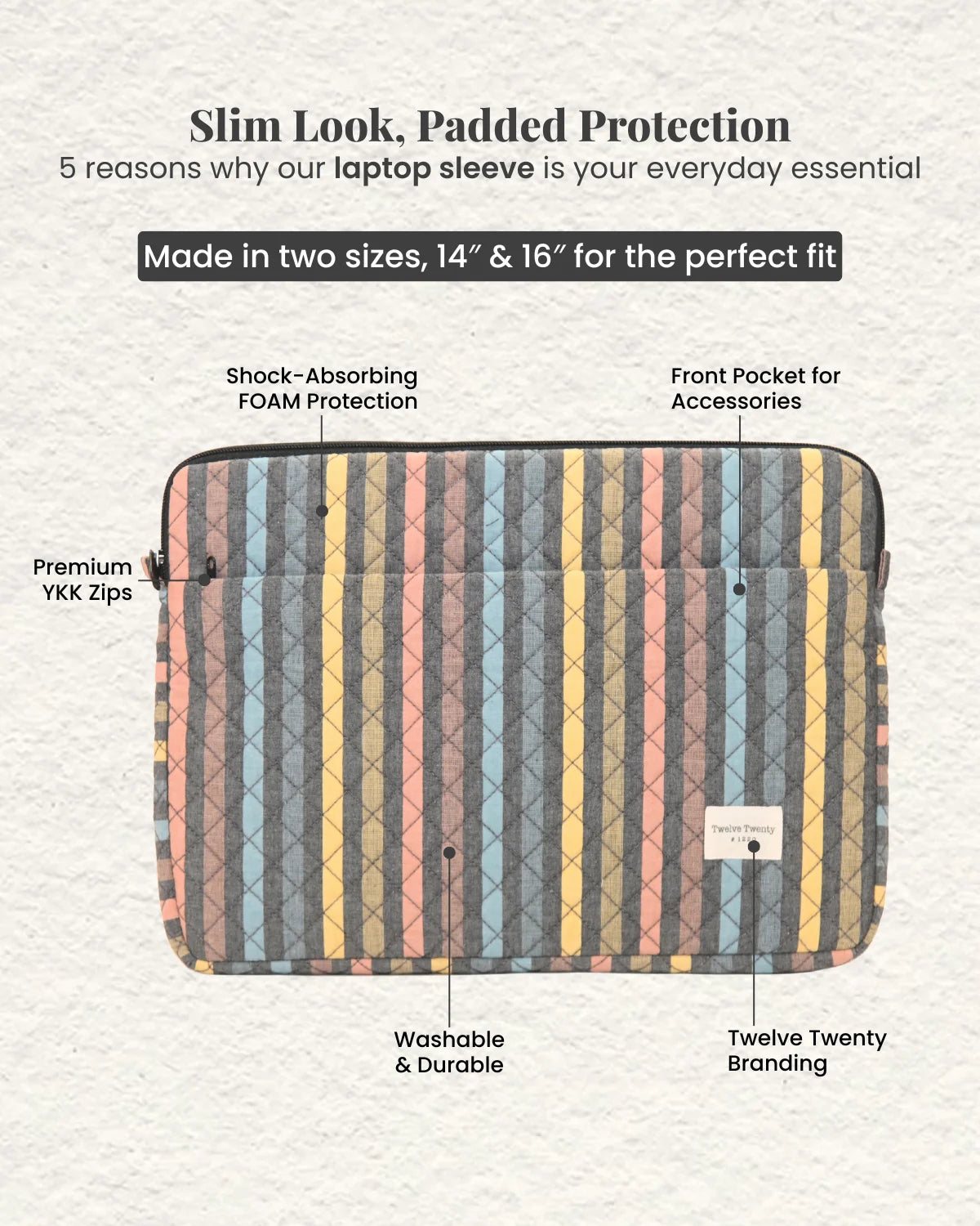 Give your laptop a stylish and protective look with our quilted laptop case layered with shock-absorbent HEATLON. This laptop sleeve with pocket for charger provides extra space for essentials like a diary, mouse, and earphones, making it the best laptop sleeve for everyday use.