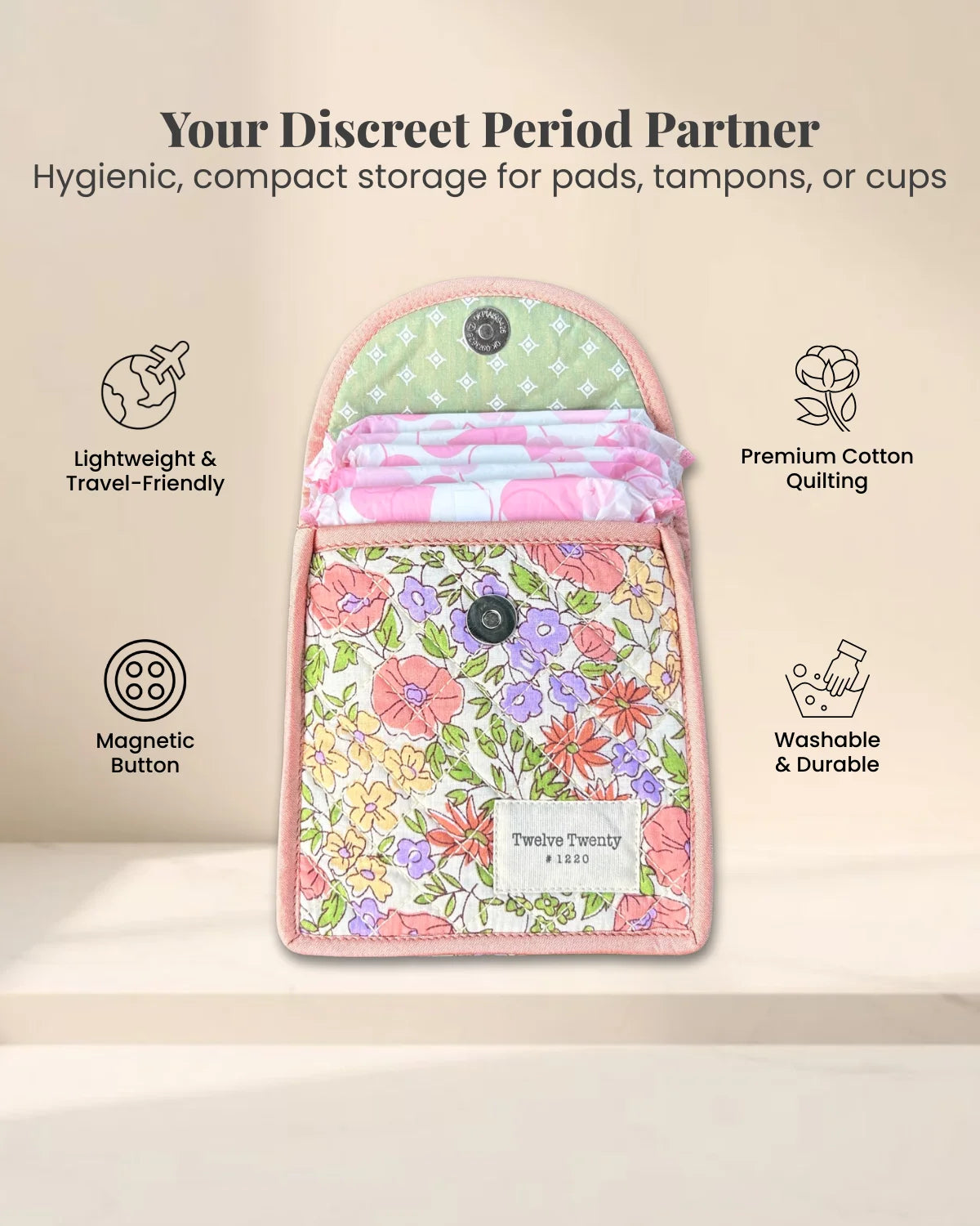 - Hygienic & Discreet Storage: Carry your menstrual essentials with ease, whether they are pads, tampons, or a menstrual cup.