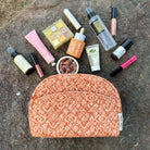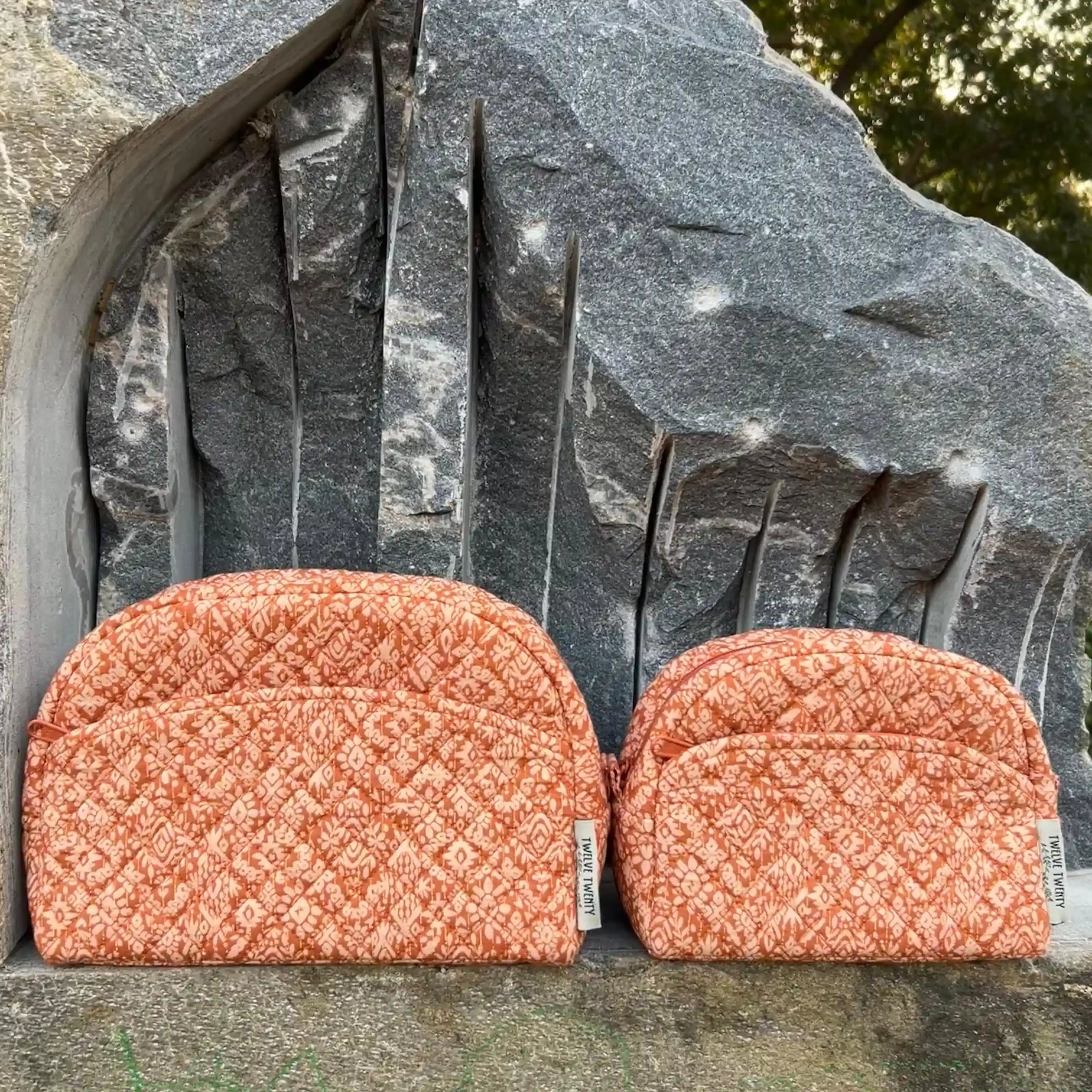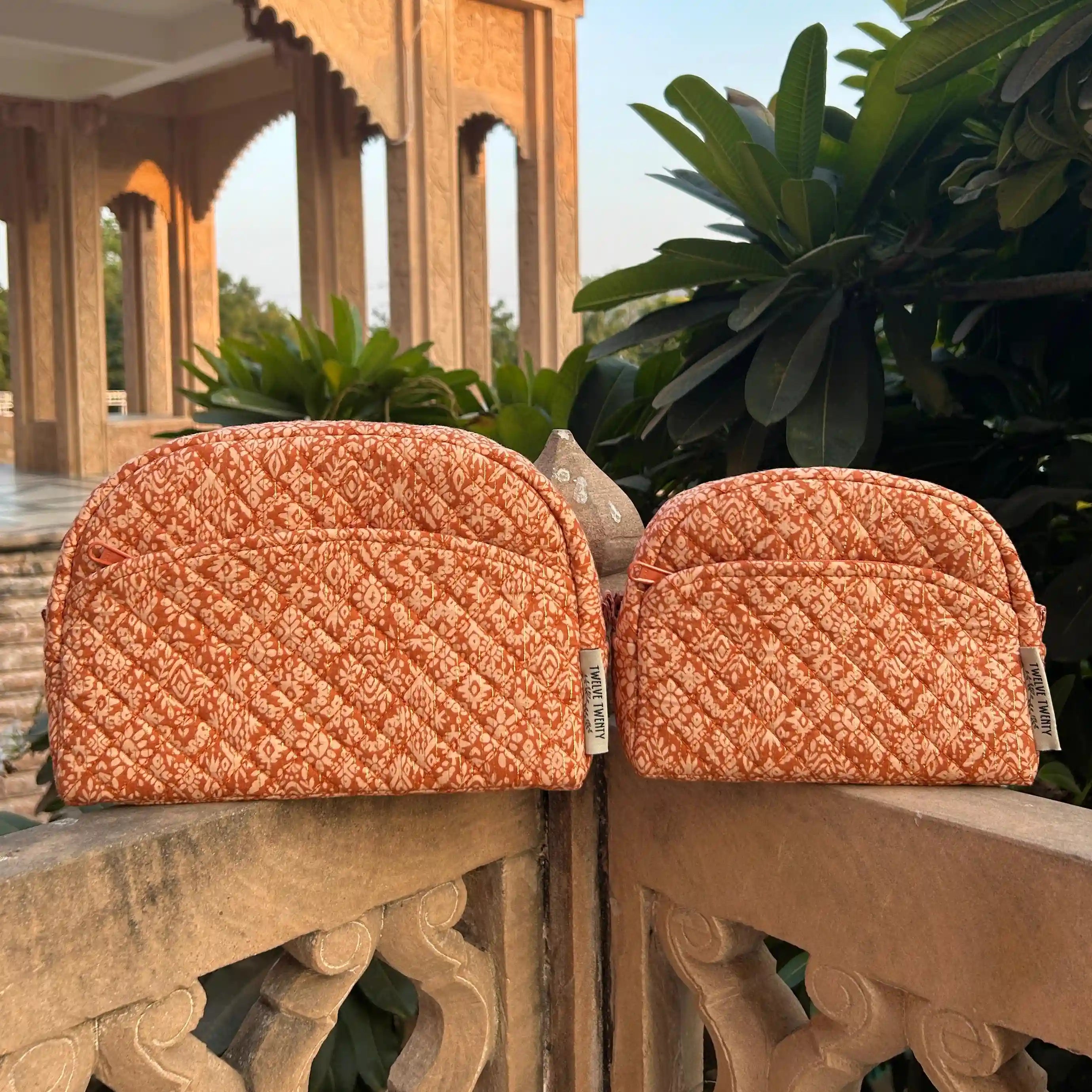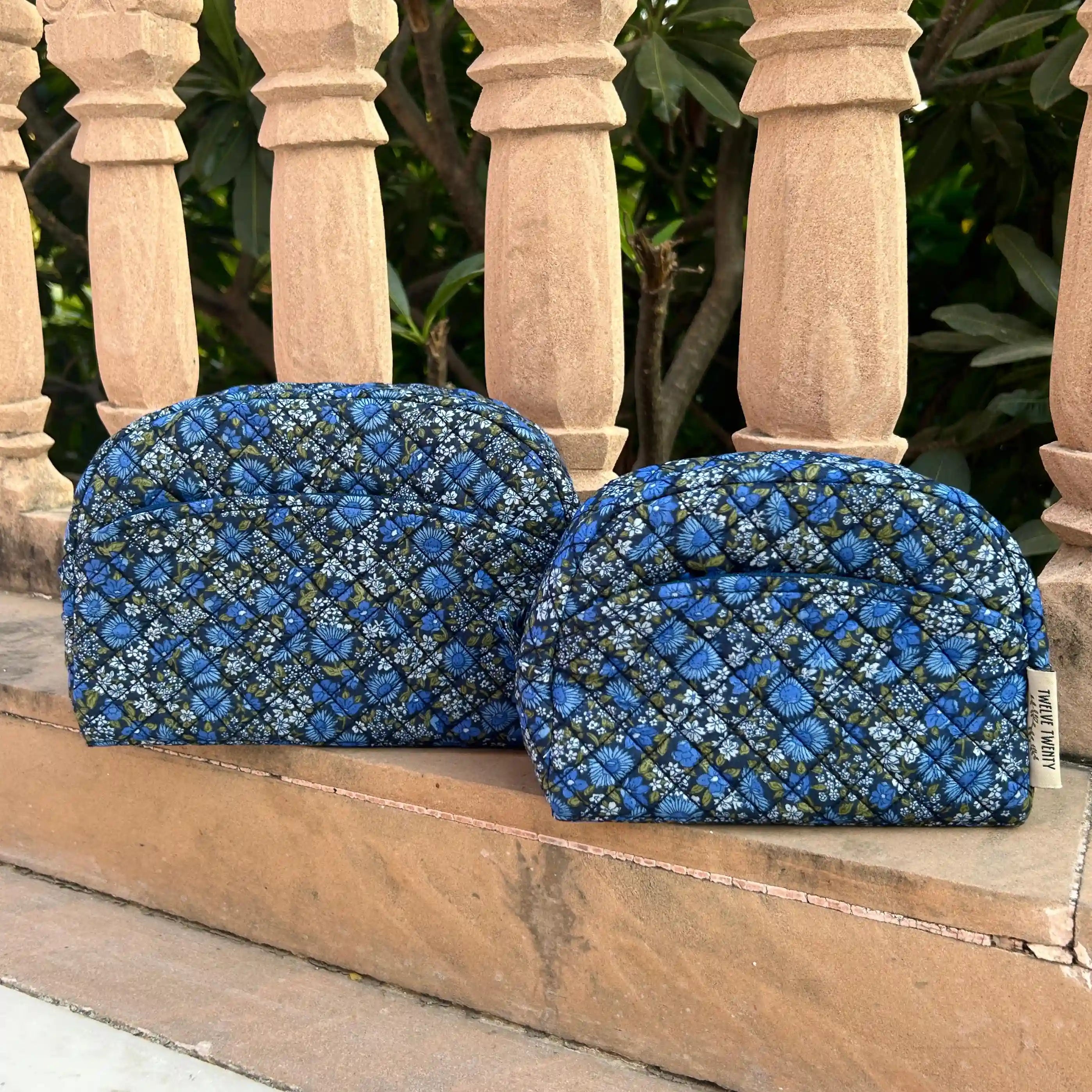Comes in a set of 2 (1xMedium & 1xLarge) These vanity bags are fancy and handy - a perfect combination. Lined with a transparent plastic layer; any spillage can be wiped away easily. These bags can hold all your makeup and toiletries.