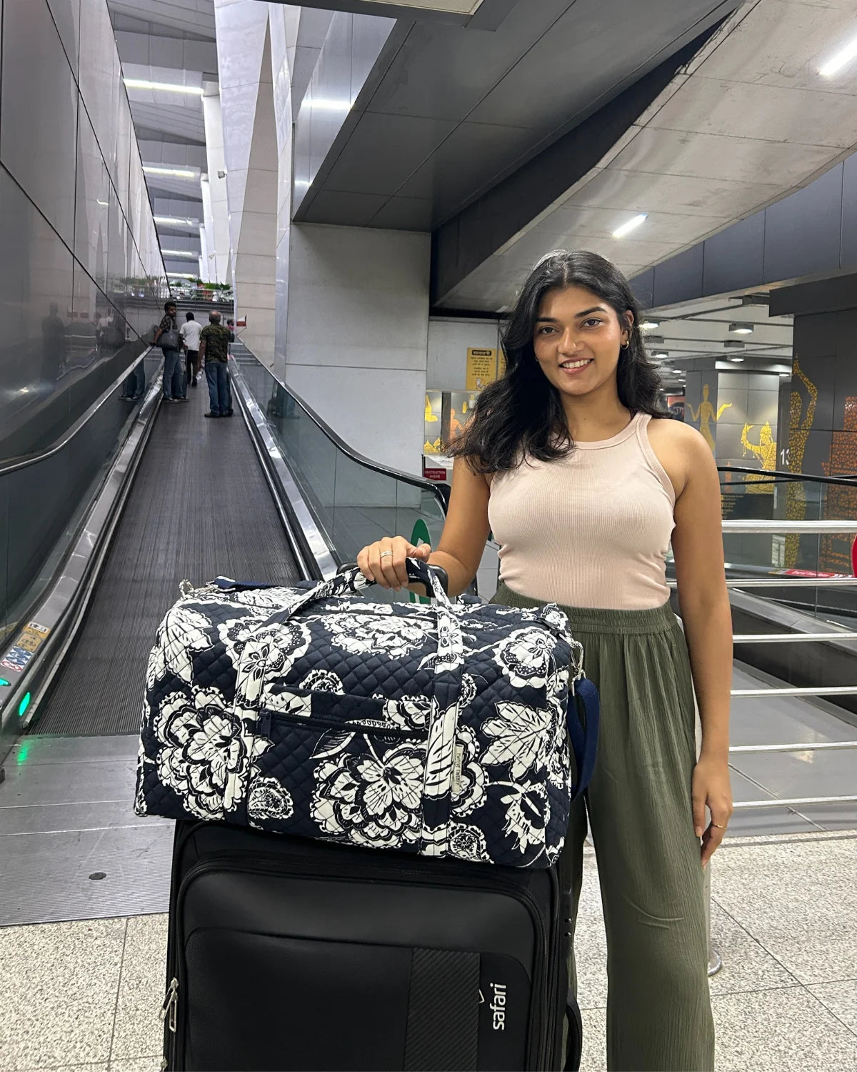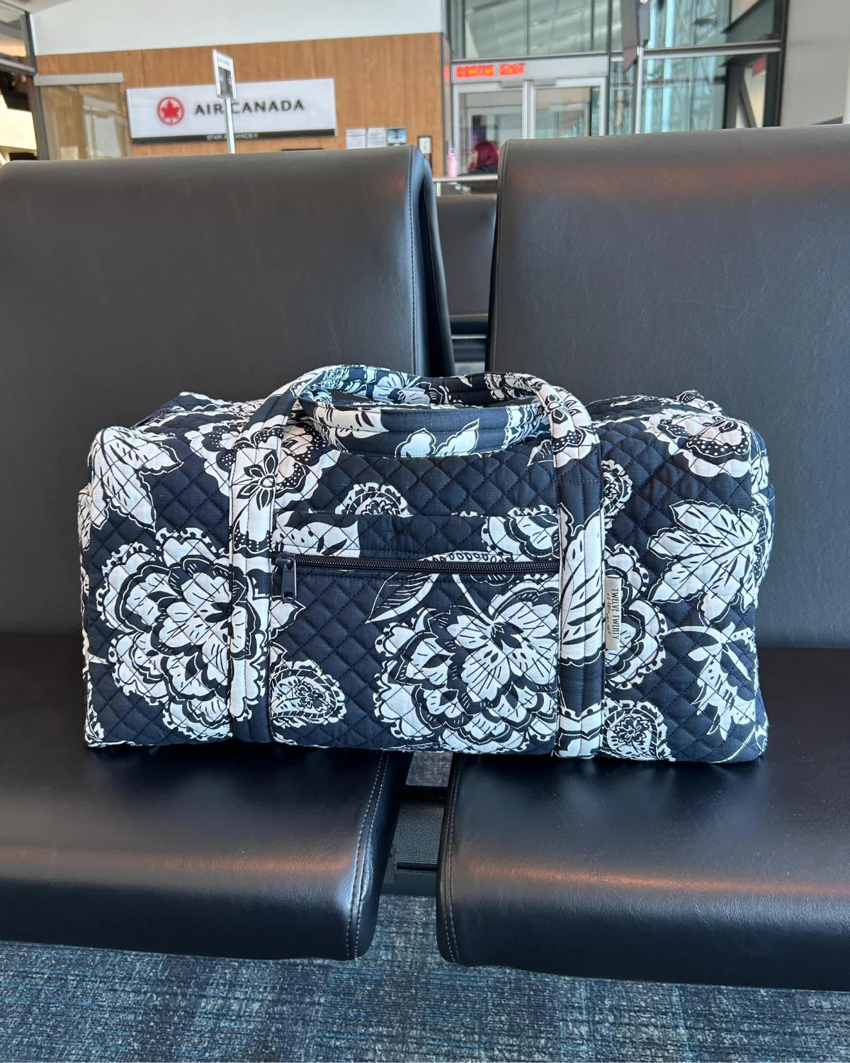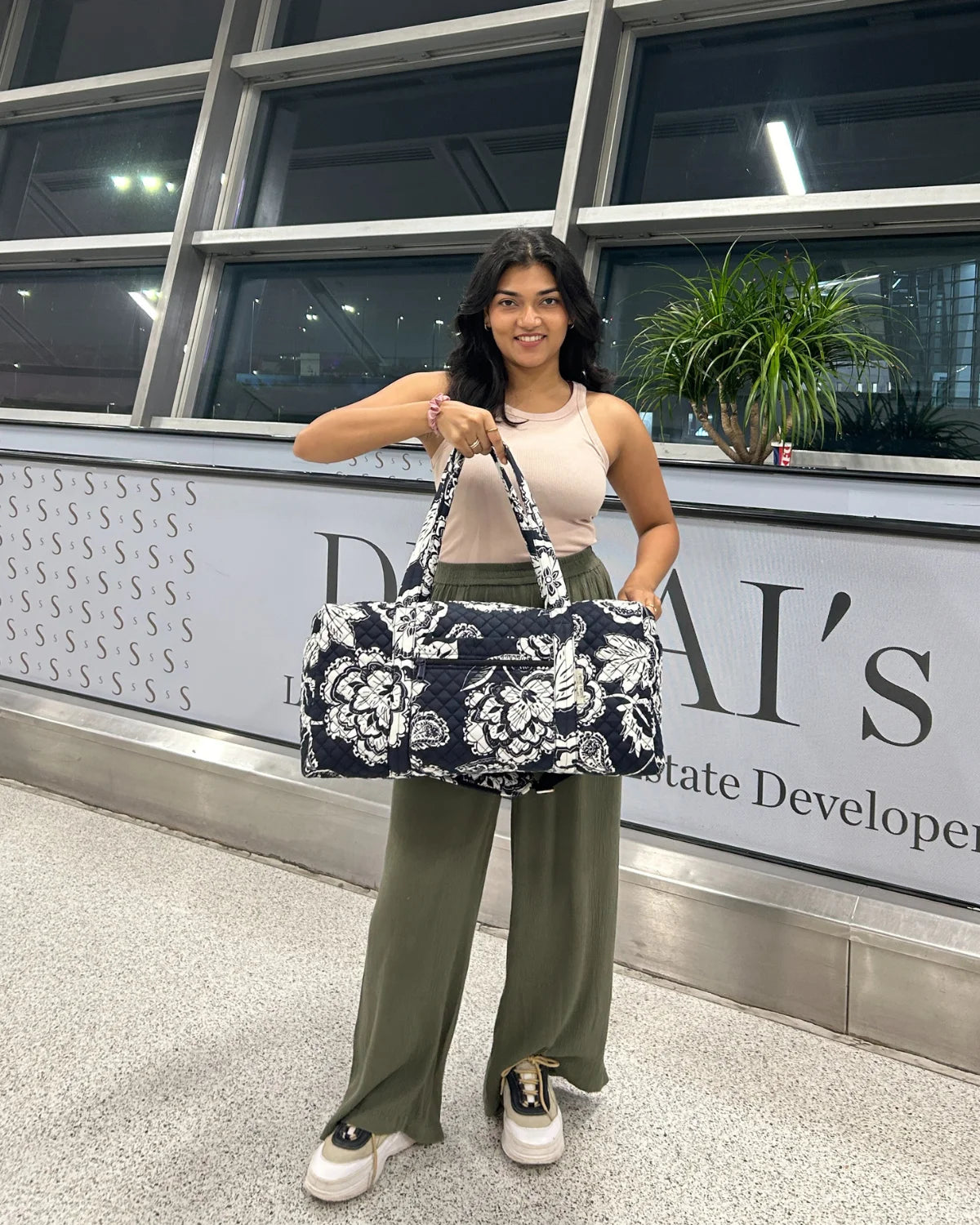 Going home for a long weekend or out on an adventure getaway? This quilted cotton Duffle helps you pack it all in style. With interior pockets to keep cosmetics, wallet, and socks organised. Exterior pockets for quick access to boarding passes, snacks or books. It’s your perfect travel companion!