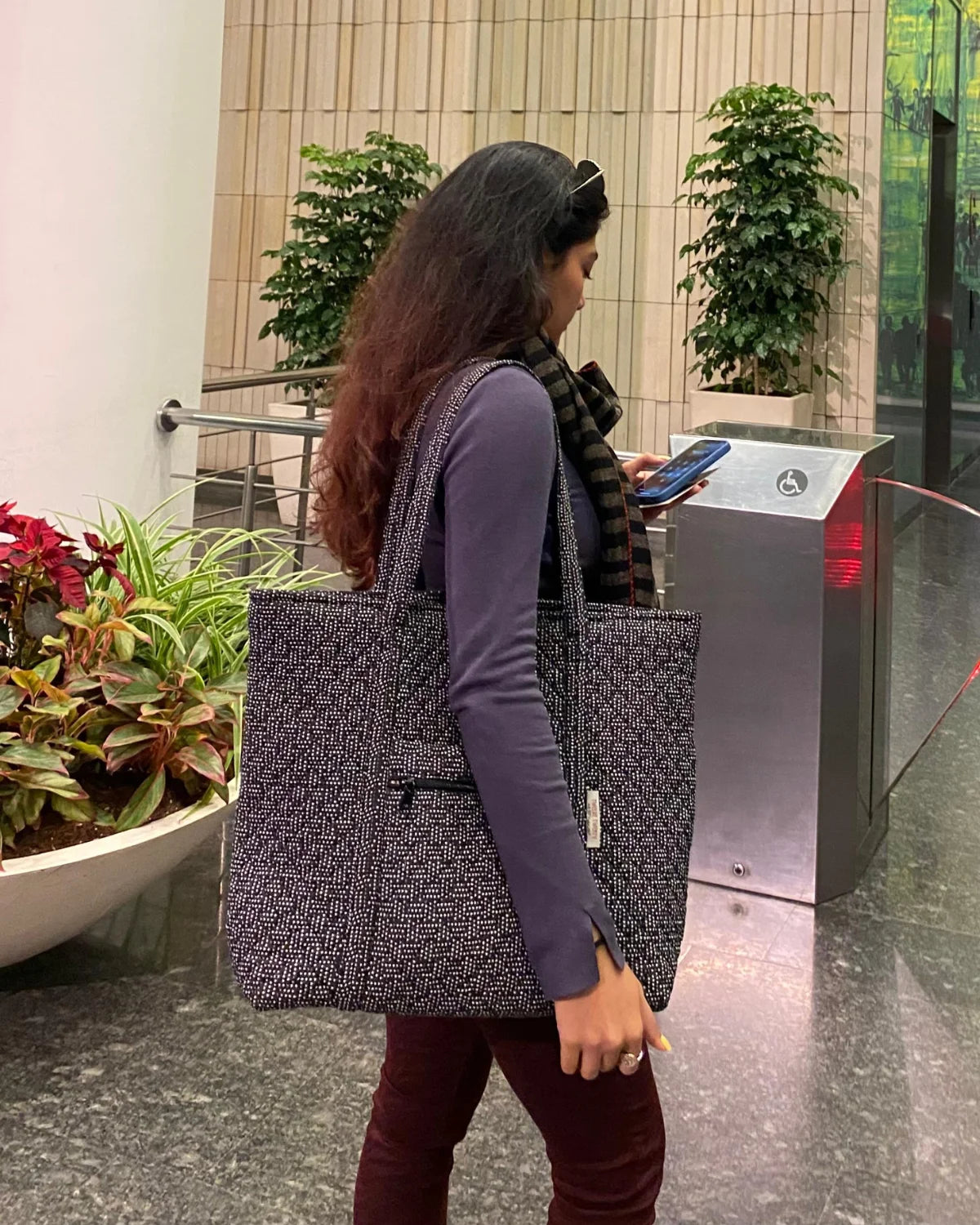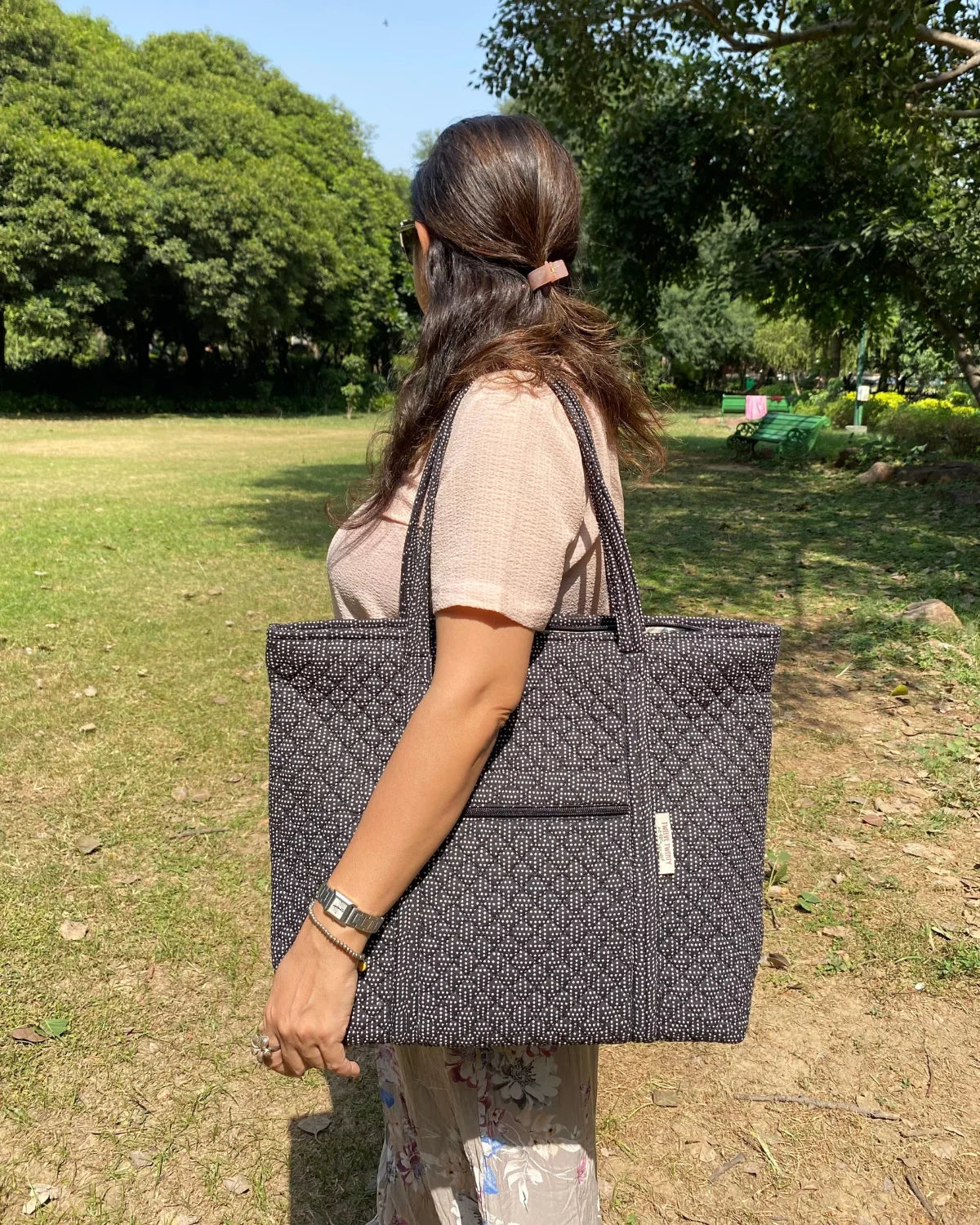- Vibrant & Classy Prints: A stylish printed tote bag that effortlessly elevates your office look.