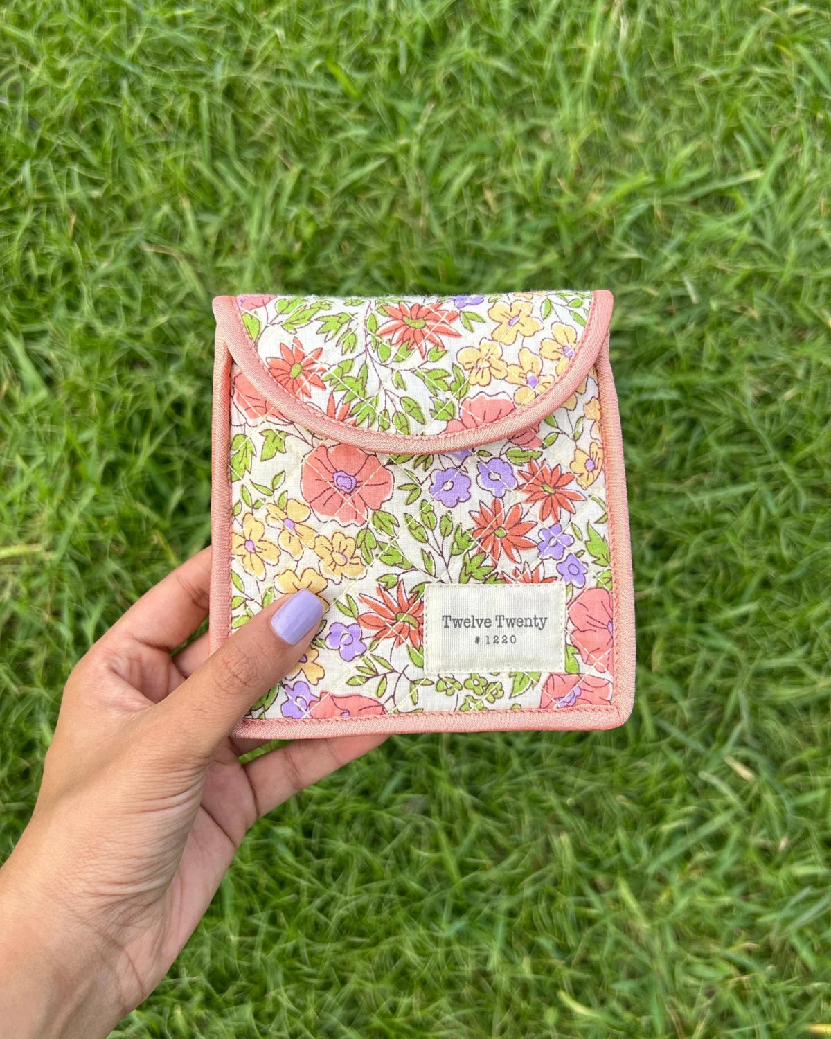 Made from premium quilted cotton in stylish prints, paired with coordinated printed cotton lining from inside. Equipped with top quality zippers, pullers, and hardware to ensure durability, stability, and refined style.